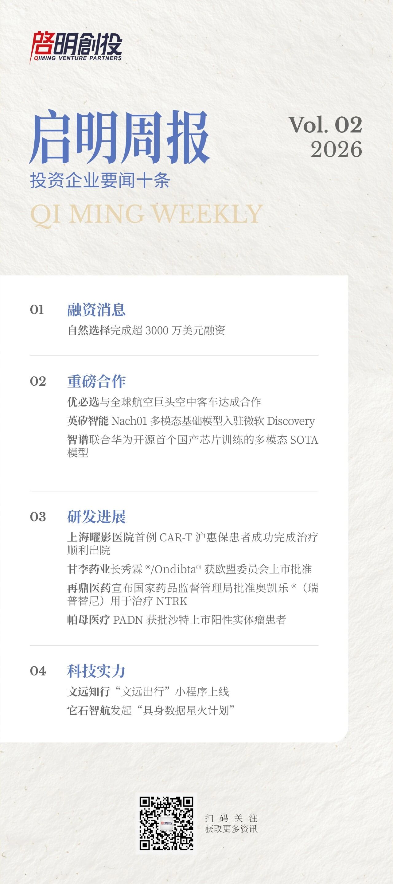 編者按:2026年,《啟明周報》升級煥新,每周定期更新,僅精選啟明創(chuàng)投投資企業(yè)的十條重磅動態(tài),涵蓋融資進展與發(fā)展突破等。