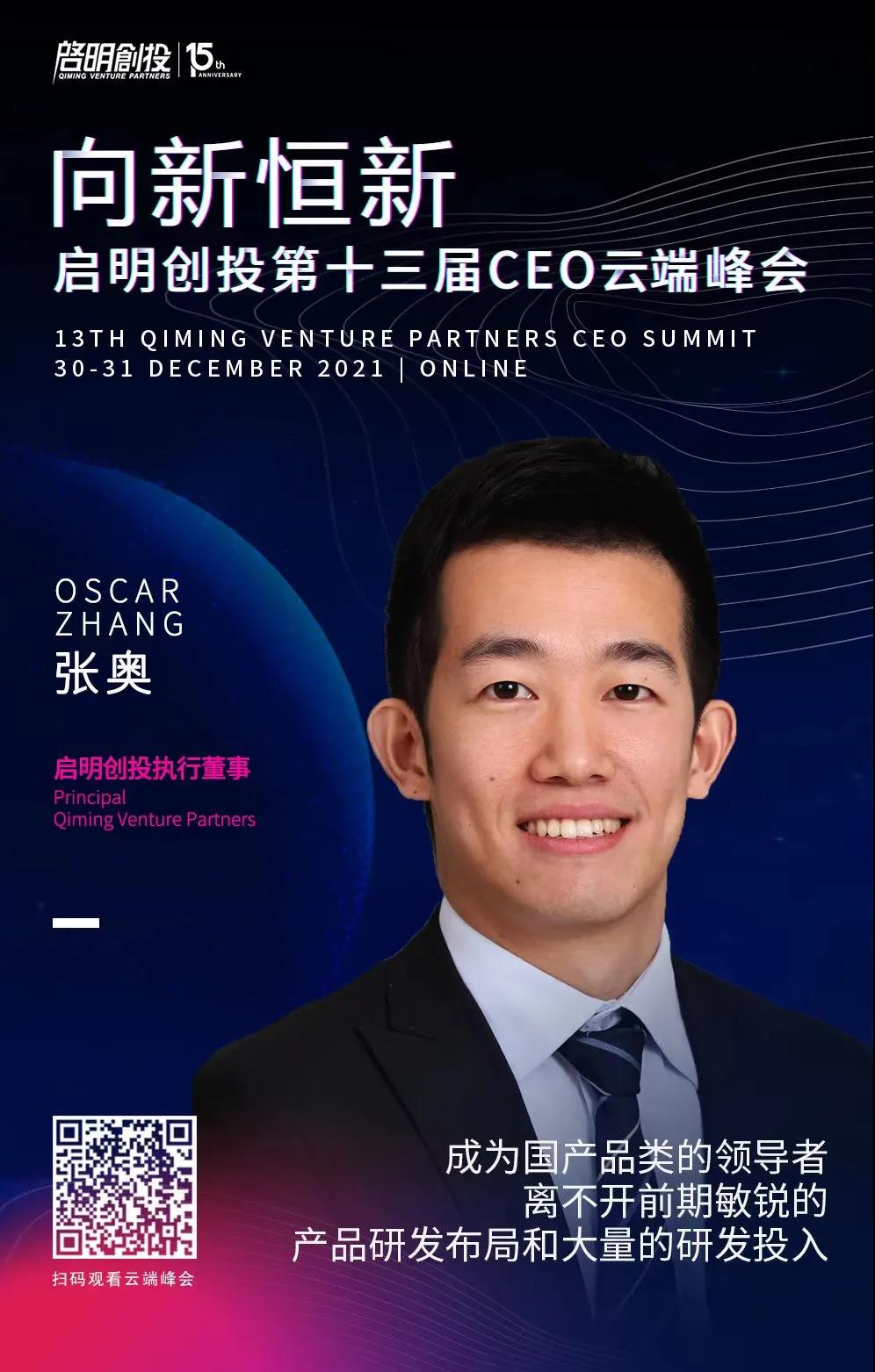 2021年12月30-31日,啟明創(chuàng)投CEO云端峰會成功舉辦。這場持續(xù)十三年的盛會由啟明創(chuàng)投主辦,旨在為CEO們提供一個(gè)充分交流探討的機(jī)會與平臺,共同見證技術(shù)與創(chuàng)新的先鋒力量,探討在巨大的變局面前TMT和醫(yī)療健康領(lǐng)域面臨的機(jī)會與挑戰(zhàn)。