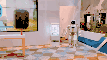 在本次CES上,優(yōu)必選在展臺搭建了一個家庭場景,Walker為家庭中的主人提供暖心的服務(wù)。當(dāng)主人回到家,Walker通過語音互動,確認主人身份后通過智能家居接口打開燈,然后幫主人開門。進門后,主人說:“Walker,幫我拿一下包?!盬alker會接過主人手中的包并把它掛到墻上。主人有點累,Walker播放了一段放松的音樂并隨著音樂來了一段即興舞蹈,主人坐在沙發(fā)上說:“幫我拿點食物?!盬alker聽到后走去廚房,打開冰箱門拿水,然后再走到吧臺旁拿薯片,最后拿著水和薯片走回沙發(fā)旁,遞給主人。過了一會兒,Walker主動提醒主人今天有約會。在主人準備出門前,Walker通過主動獲取天氣信息得知當(dāng)天可能會下雨,便走到雨傘放置處,取出雨傘,然后拿給主人。在主人出門后,Walker會主動關(guān)掉家中電視、電燈等設(shè)備的開關(guān)。
