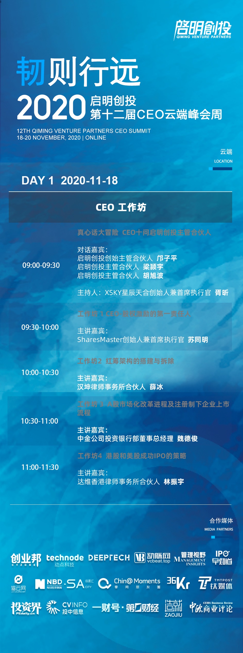 2020年11月18-20日,啟明創(chuàng)投歡迎您加入2020啟明創(chuàng)投第十二屆CEO云端峰會(huì)周,激蕩思想,共赴明日。