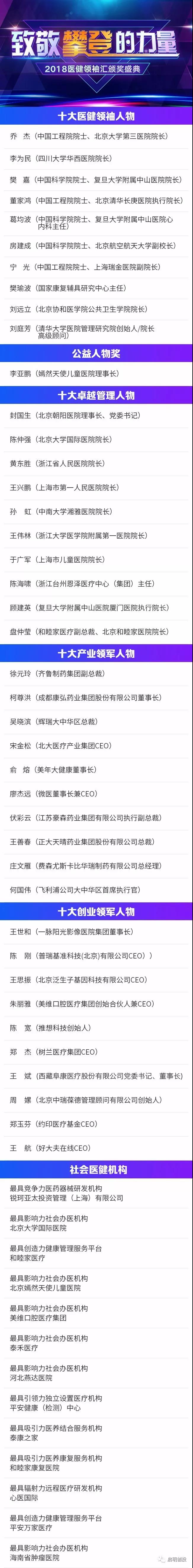 啟明投資企業(yè)微醫(yī)集團董事長兼CEO廖杰遠當選“十大產(chǎn)業(yè)領(lǐng)軍人物”;啟明投資企業(yè)推想科技創(chuàng)始人陳寬和樹蘭醫(yī)療集團CEO鄭杰當選“十大創(chuàng)業(yè)領(lǐng)軍人物”。