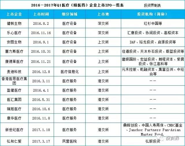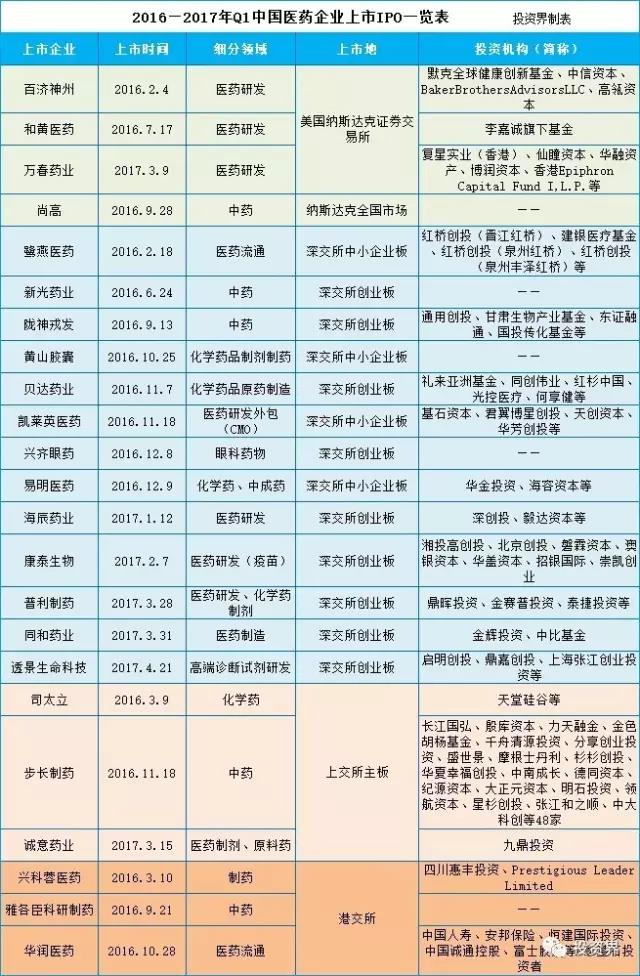 2016—2017年一季度醫(yī)藥企業(yè)IPO詳細(xì)情況,投資界根據(jù)網(wǎng)絡(luò)公開信息不完全統(tǒng)計整理如下: