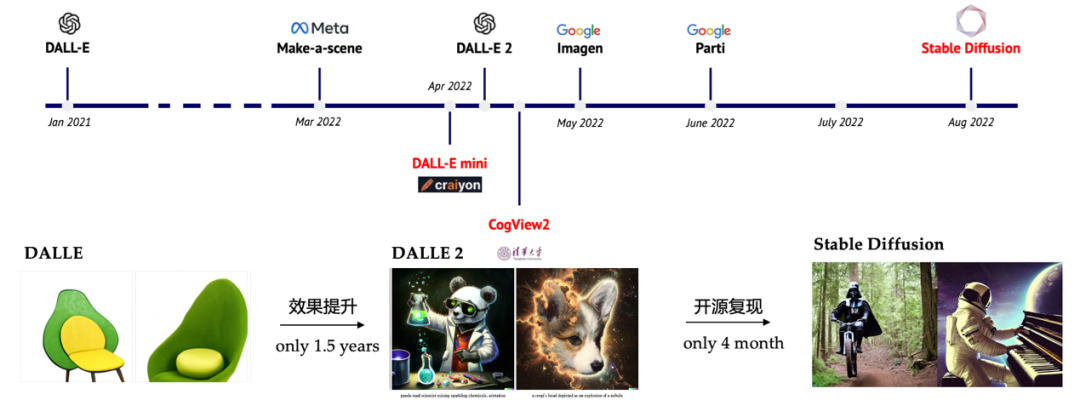 DALLE、DALL-E 2和其他開源模型的發(fā)布時間線與效果