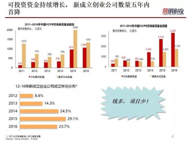所以從可投資的資金以及可被投資的項(xiàng)目的對(duì)比來(lái)看,其實(shí)我們對(duì)2017年投資人的投資活躍度和投資意愿,還是比較看好的。