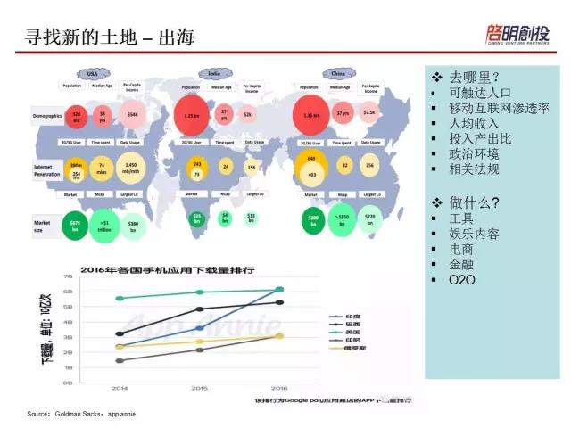 為什么大家會(huì)看出海機(jī)會(huì)?主要是中美互聯(lián)網(wǎng)發(fā)展到一個(gè)成熟的階段,你的經(jīng)驗(yàn)、你的知識(shí)可以被快速?gòu)?fù)制應(yīng)用到一些相對(duì)不那么發(fā)達(dá)的、但是是在快速成長(zhǎng)的過(guò)程中的移動(dòng)互聯(lián)網(wǎng)地區(qū)。