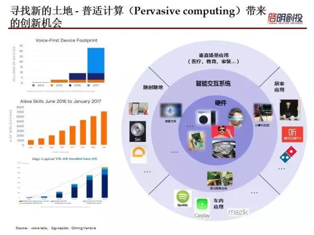這一切,顛覆式硬件,創(chuàng)新的交互方式, 將帶來(lái)的是pervasive computing,除了手機(jī), 居家, 車, 各種垂直場(chǎng)景都將有應(yīng)用計(jì)算智能陪伴我們,而我們更關(guān)心的這一切可能帶來(lái)的新的消費(fèi)應(yīng)用和服務(wù)。我們看Echo的技能,在2016年年底的時(shí)候,已經(jīng)增長(zhǎng)接近七千個(gè)——年初的時(shí)候才有一千個(gè),再到現(xiàn)在已經(jīng)有1萬(wàn)多個(gè)了。