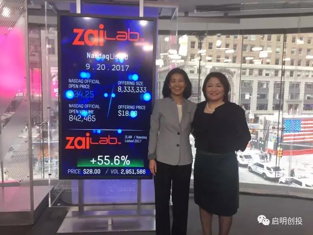 再鼎醫(yī)藥CEO杜瑩女士與啟明創(chuàng)投主管合伙人梁穎宇女士在上市現(xiàn)場合影