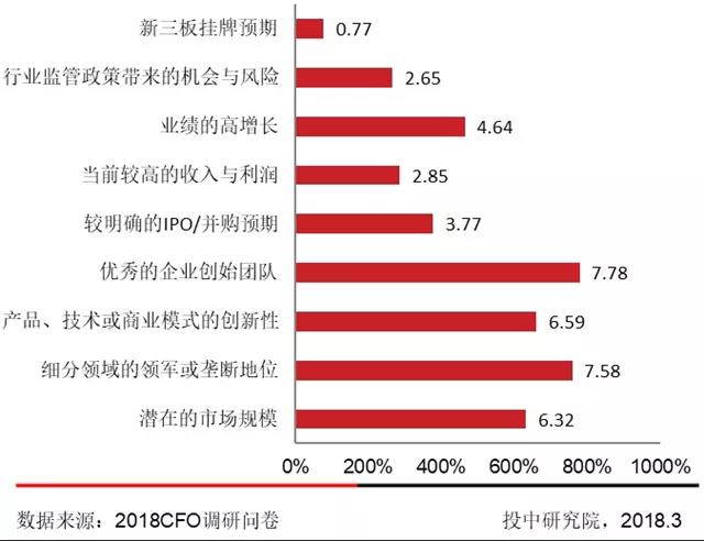 (1)“優(yōu)秀的企業(yè)創(chuàng)始團隊”成為CFO對擬投項目的首要評價標準。