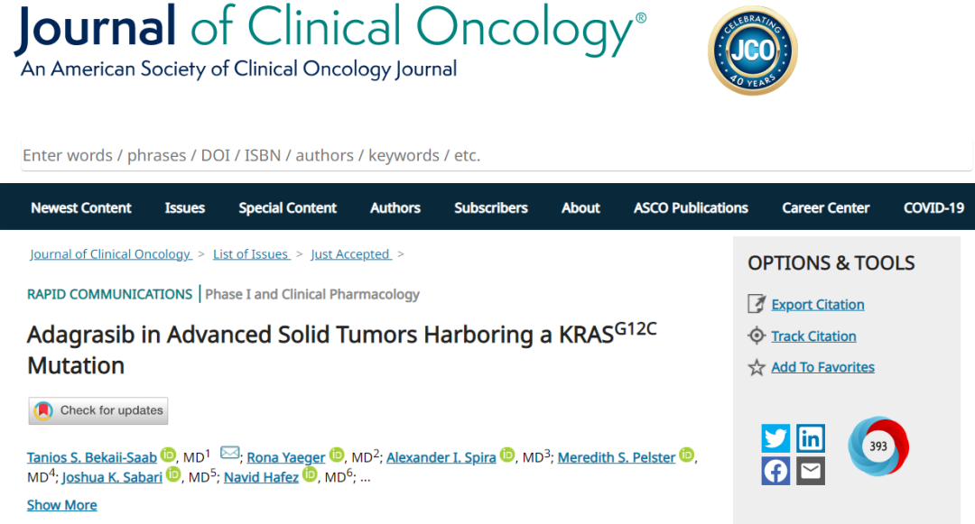 《臨床腫瘤學雜志》同時將相關發(fā)現(xiàn)以快速通訊的形式發(fā)表,代表該研究具備最新突破性,可能會對患者治療產(chǎn)生直接影響。根據(jù)再鼎醫(yī)藥與Mirati Therapeutics達成的合作和許可協(xié)議,再鼎醫(yī)藥擁有在大中華區(qū)研究、開發(fā)、生產(chǎn)及獨家商業(yè)化adagrasib的權利。