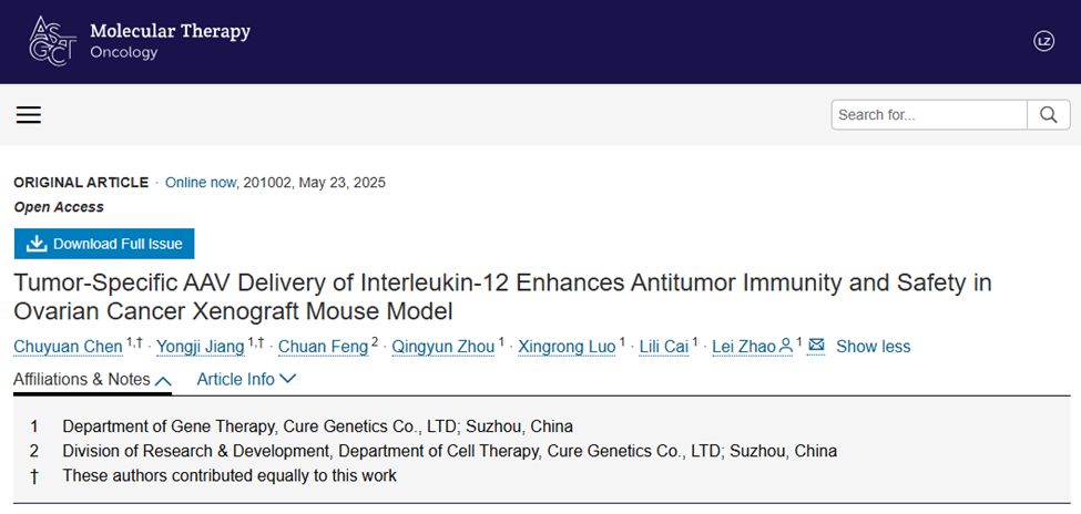 近日,依托腫瘤靶向的AAV載體,啟明創(chuàng)投投資企業(yè)克睿基因在Molecular Therapy Oncology發(fā)表了一項(xiàng)在腫瘤免疫治療領(lǐng)域應(yīng)用AAV療法的研究(項(xiàng)目號(hào):CGC-008),通過自主研發(fā)的靶向AAV遞送技術(shù)(targeted viral particles)精準(zhǔn)遞送白介素-12到腫瘤組織微環(huán)境,開發(fā)卵巢癌及子宮內(nèi)膜癌的創(chuàng)新療法,探索AAV基因治療在大適應(yīng)證中的可行性。