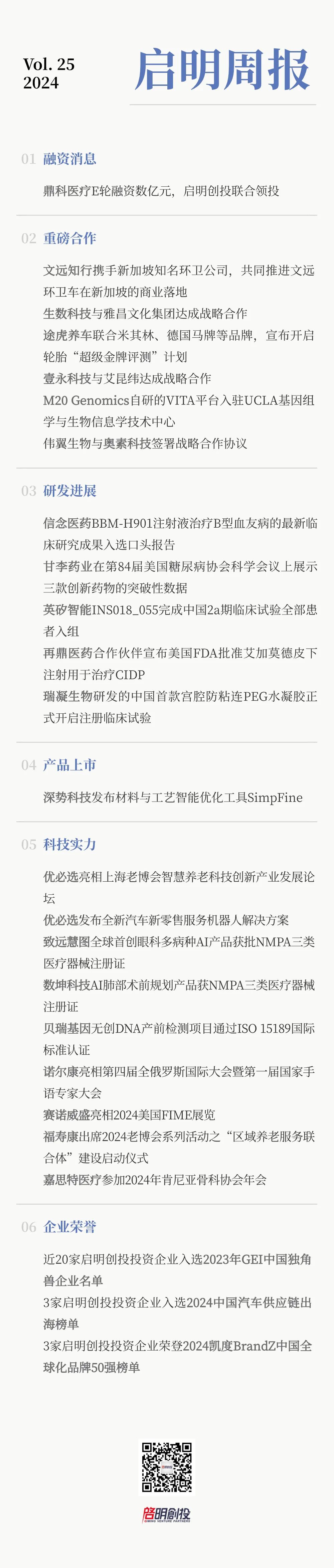 編者按:“啟明周報(bào)”欄目會(huì)在每周定期發(fā)布,盤點(diǎn)啟明創(chuàng)投投資企業(yè)的融資新聞、發(fā)展動(dòng)態(tài)。