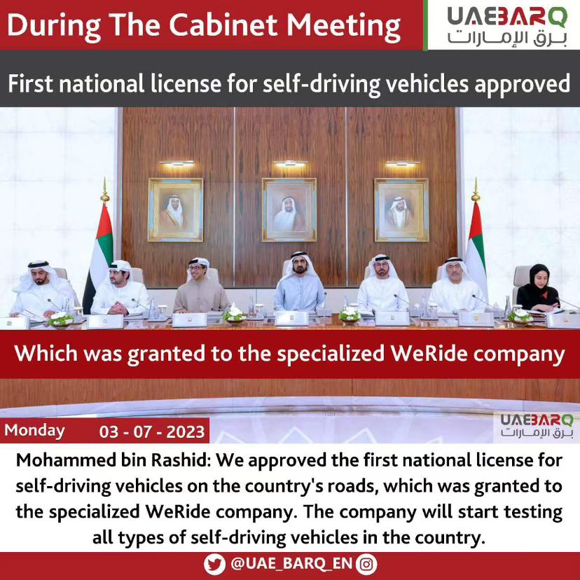 日前,阿聯(lián)酋宣布批準(zhǔn)了首個(gè)自動(dòng)駕駛路跑牌照,并將其授予啟明創(chuàng)投投資企業(yè)、全球領(lǐng)先的L4自動(dòng)駕駛科技公司文遠(yuǎn)知行,這也是中東乃至全球首個(gè)國(guó)家級(jí)全域自動(dòng)駕駛路跑牌照。獲此牌照后,文遠(yuǎn)知行將在阿聯(lián)酋開(kāi)展各類(lèi)自動(dòng)駕駛車(chē)輛的路跑測(cè)試和運(yùn)營(yíng)。