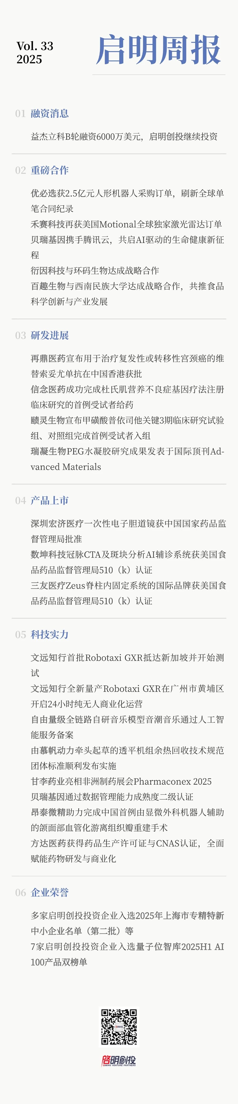 啟明創(chuàng)投投資企業(yè)無問芯穹、移芯通信、英矽智能、棧略數(shù)據(jù)、福壽康、千麥醫(yī)療等入選2025年上海市專精特新中小企業(yè)名單(第二批);后摩智能、衍因科技、英矽智能等入選2025年上海市創(chuàng)新型中小企業(yè)名單(第二批)。