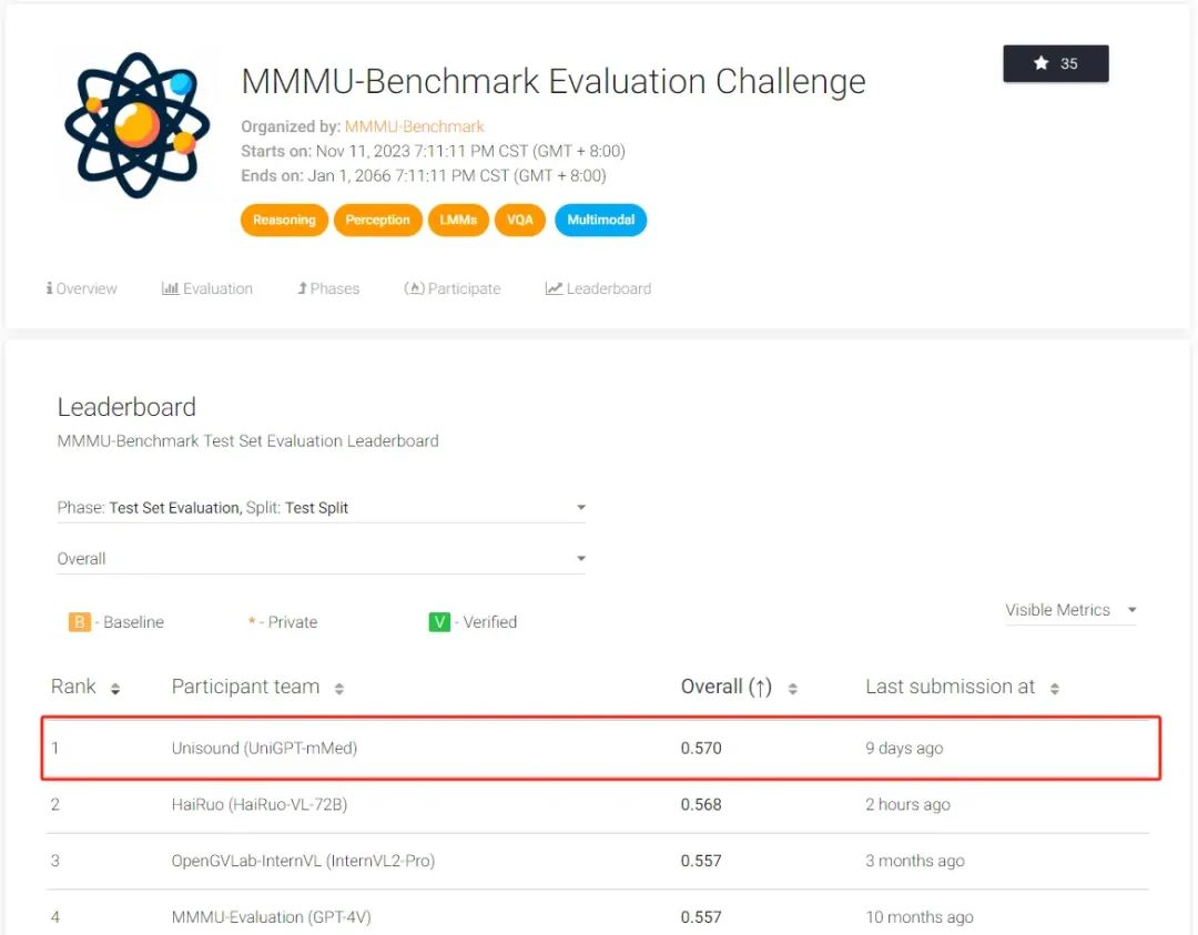 近日,多模態(tài)人工智能模型基準(zhǔn)評測集MMMU更新結(jié)果,啟明創(chuàng)投投資企業(yè)云知聲的山海多模態(tài)大模型UniGPT-mMed在通用能力、醫(yī)療專業(yè)能力評測中排名第一,充分彰顯其硬核實(shí)力。
