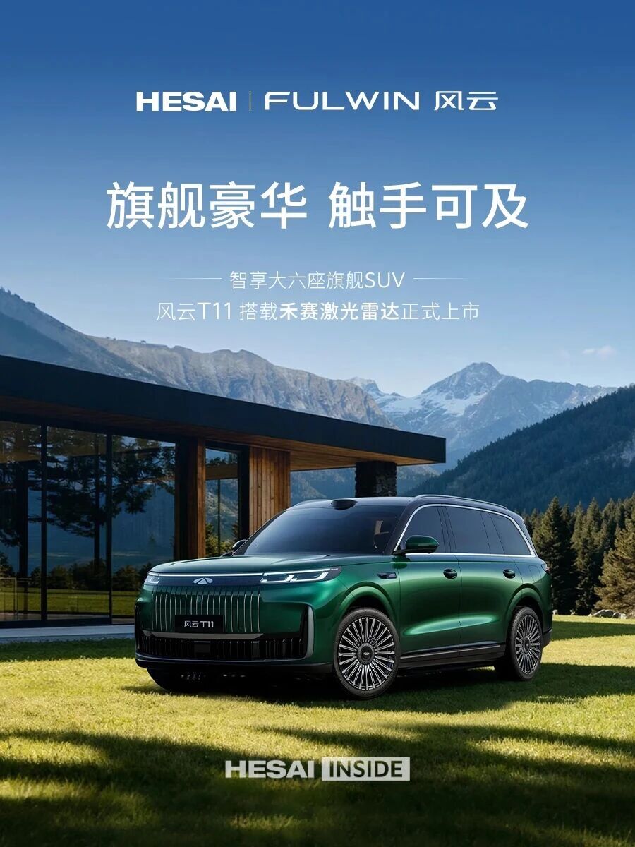 日前,智享大六座旗艦SUV奇瑞風(fēng)云T11全球上市,推出220后驅(qū)伯牙巨幕奢享版、220后驅(qū)雙IMAX影院版、220四驅(qū)雙IMAX影院版、220四驅(qū)全家樂4款車型,限時17.99萬元起,其中220四驅(qū)全家樂搭載啟明創(chuàng)投投資企業(yè)禾賽科技(NASDAQ:HSAI, 02525.HK)的激光雷達。風(fēng)云T11預(yù)售以來,已經(jīng)鎖單28732臺。
