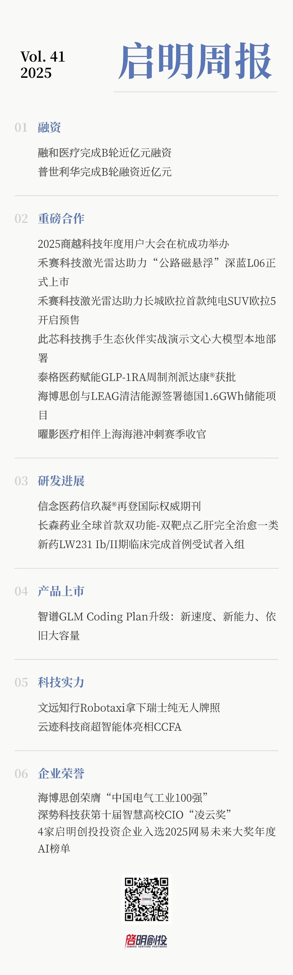 在科技與創(chuàng)新的浪潮中,創(chuàng)業(yè)者的每一步都值得記錄。啟明創(chuàng)投將一如既往地為創(chuàng)業(yè)者加速賦能,并和你一起關(guān)注啟明創(chuàng)投投資企業(yè)的里程碑時(shí)刻。