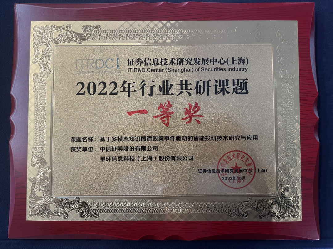 近日,證券信息技術研究發(fā)展中心(上海)(下稱“ITRDC”)發(fā)布了2022年度行業(yè)共研評審結果,啟明創(chuàng)投投資企業(yè)星環(huán)科技(688031.SH)與中信證券股份有限公司聯(lián)合申報的《基于多模態(tài)知識圖譜政策事件驅動的智能投研技術研究與應用》課題榮獲ITRDC 2022年行業(yè)共研課題一等獎。