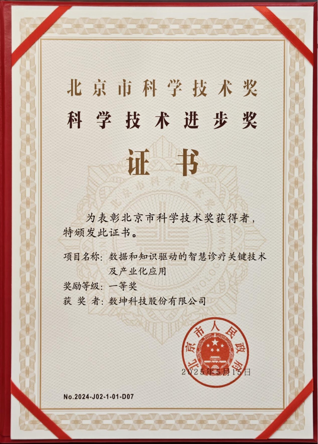 近日,2024年度北京市科學(xué)技術(shù)獎名單正式揭曉。由啟明創(chuàng)投投資企業(yè)數(shù)坤科技聯(lián)合中國人民解放軍總醫(yī)院、國防科技大學(xué)、北京交通大學(xué)等單位共同完成的“數(shù)據(jù)和知識驅(qū)動的智慧診療關(guān)鍵技術(shù)及產(chǎn)業(yè)化應(yīng)用”項目,斬獲北京市科學(xué)技術(shù)進步獎一等獎。