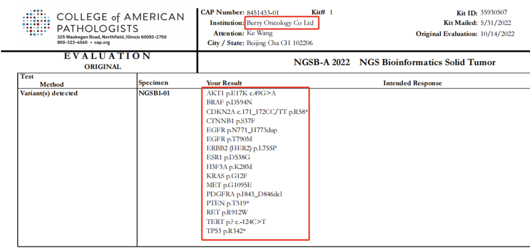 NGSB-A是2022年上半年CAP組織的用于評估全球基因診斷實驗室NGS數(shù)據(jù)分析能力的能力驗證項目。和瑞基因所提交結(jié)果與CAP標(biāo)準(zhǔn)答案完全一致,實力印證了和瑞基因在生物信息分析方面的出色能力。