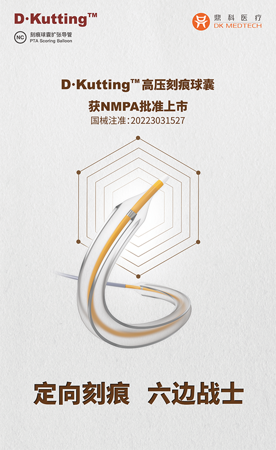 DKutting?高壓刻痕球囊為國產(chǎn)獲批的首款用于外周血管的高壓強(qiáng)定向擴(kuò)張球囊,該產(chǎn)品采用獨(dú)家專利設(shè)計,同時兼具優(yōu)異的通過性與定向擴(kuò)張能力,將為廣大外周血管疾病患者與臨床手術(shù)醫(yī)生帶來全新的選擇。