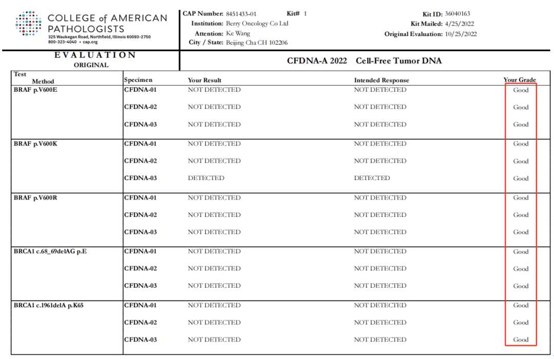 近日,美國病理學(xué)家協(xié)會(College of American Pathologists,CAP)公布了2022年Cell-Free Tumor DNA(CFDNA-A 2022)和Next?Generation Sequencing ? Germline(NGS-A 2022)能力驗證項目成績。啟明創(chuàng)投投資企業(yè)和瑞基因滿分通過此項質(zhì)評。至此,和瑞基因已連續(xù)3年滿分通過43項CAP能力驗證。