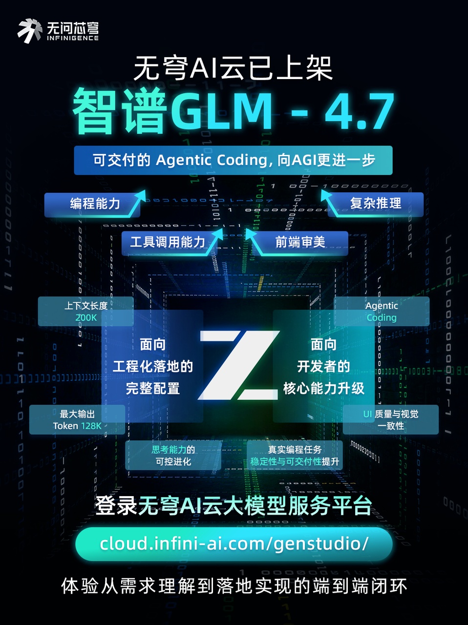 智譜GLM-4.7上架無穹芯穹AI云平臺