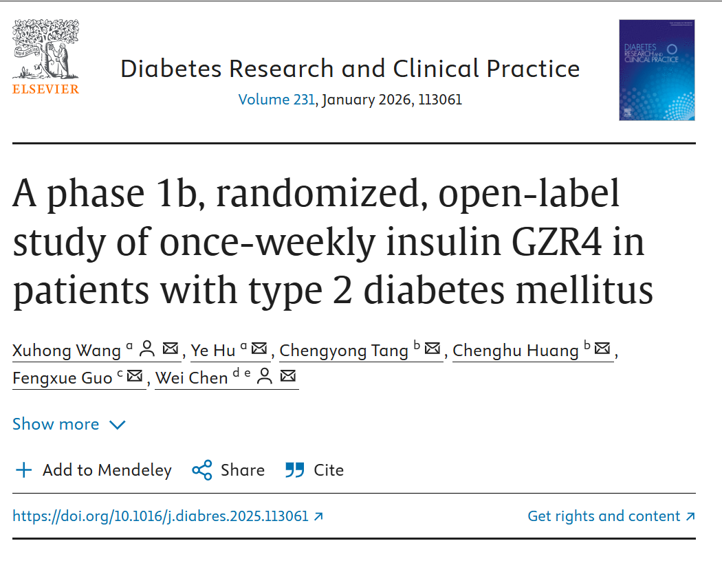 甘李藥業(yè)胰島素周制劑GZR4 Ib期研究成果在Diabetes Research and Clinical Practice發(fā)表