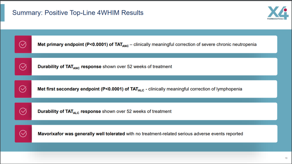 日前,啟明創(chuàng)投投資企業(yè)和譽(yù)醫(yī)藥(02256.HK)的商業(yè)合作伙伴美國生物技術(shù)公司X4 Pharmaceuticals宣布,其在研的CXCR4拮抗劑Mavorixafor在治療WHIM綜合征患者的關(guān)鍵臨床III期試驗(yàn)中獲得積極數(shù)據(jù)結(jié)果。