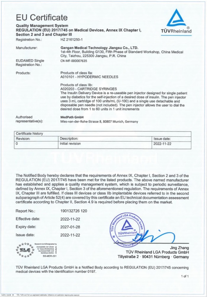 甘甘醫(yī)療此次獲得MDR證書,充分展現(xiàn)了其產(chǎn)品質(zhì)量和研發(fā)技術的高標準水平,同時體現(xiàn)了國際權威認證機構(gòu)對甘甘醫(yī)療所研發(fā)生產(chǎn)醫(yī)療器械的安全性、有效性以及產(chǎn)品質(zhì)量管理體系的極大認可。