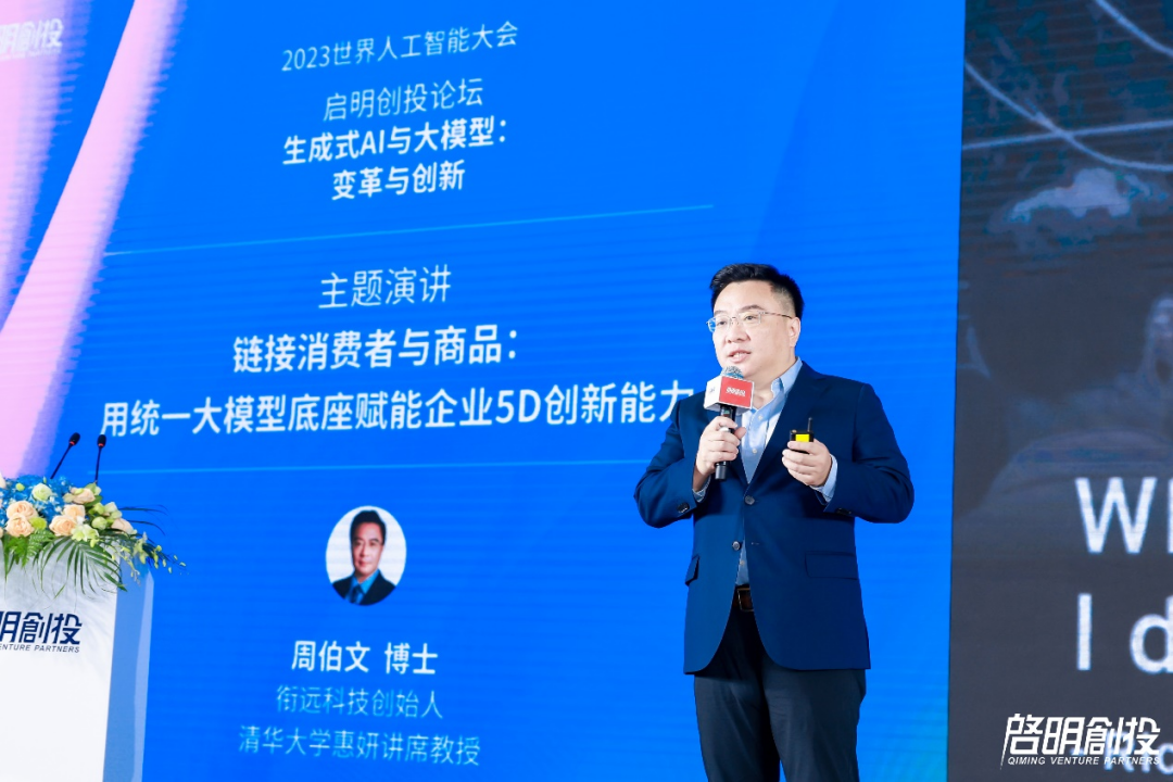 作為全球領先的致力于鏈接消費者與商品的人工智能公司,銜遠科技自研AI大模型,數百億級參數規(guī)模與獨特的訓練讓大模型在具備通用能力的基礎上,更擅長理解人與商品。銜遠科技創(chuàng)始人、清華大學惠妍講席教授周伯文博士在主題演講中分享了如何用統(tǒng)一大模型底座賦能企業(yè)5D創(chuàng)新能力。