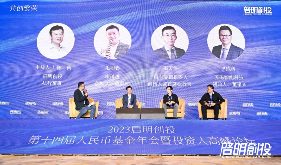 專題討論《先進制造:從專精特新邁向全球領先》由啟明創(chuàng)投執(zhí)行董事陳南主持,申科譜創(chuàng)始人、董事長毛明春,梅卡曼德機器人創(chuàng)始人兼首席執(zhí)行官邵天蘭,蘇磁智能科技創(chuàng)始人、董事長尹成科參與討論。嘉賓們圍繞中國先進制造業(yè)的科技實力、將科技轉化為產(chǎn)品并實現(xiàn)規(guī)模化及企業(yè)出海前的準備展開分享。