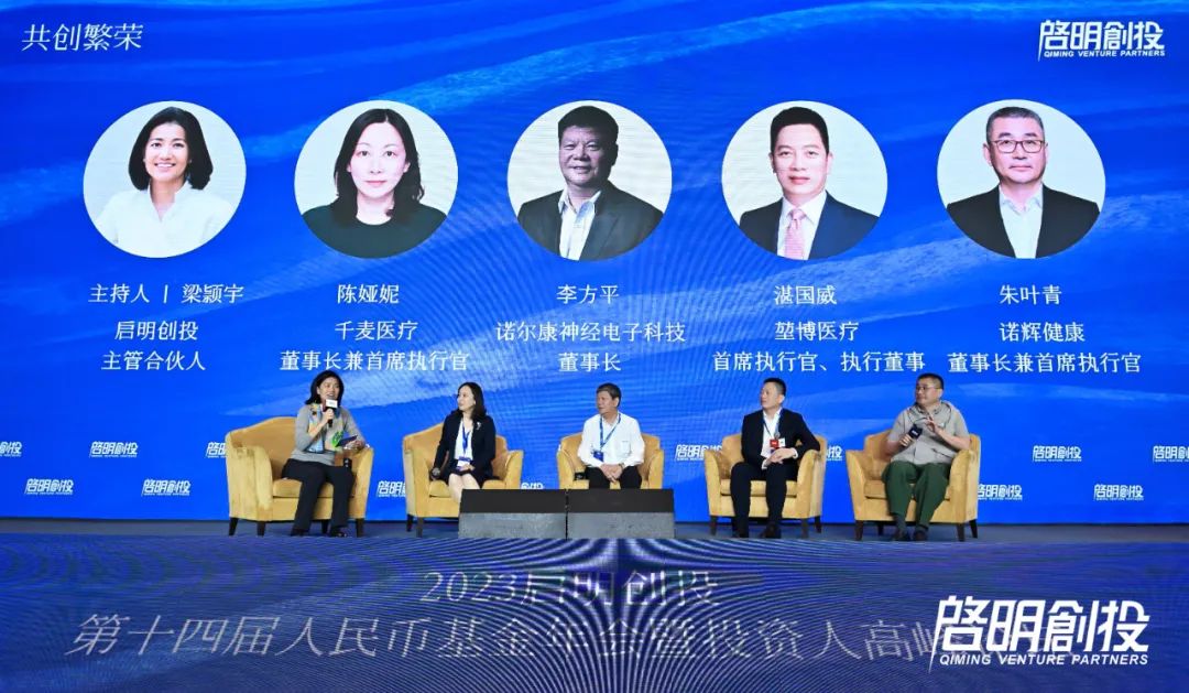 作為創(chuàng)新創(chuàng)業(yè)的沃土,杭州匯聚了眾多優(yōu)質企業(yè)。高峰論壇特設《對話在杭企業(yè):創(chuàng)新無界,從杭州走向世界》,邀請了4家啟明創(chuàng)投在杭企業(yè)創(chuàng)始人參與討論。啟明創(chuàng)投主管合伙人梁颕宇主持,與千麥醫(yī)療董事長兼首席執(zhí)行官陳婭妮,諾爾康神經(jīng)電子科技董事長李方平,堃博醫(yī)療(02216.HK)首席執(zhí)行官、執(zhí)行董事湛國威,諾輝健康(06606.HK)董事長兼首席執(zhí)行官朱葉青展開討論。
