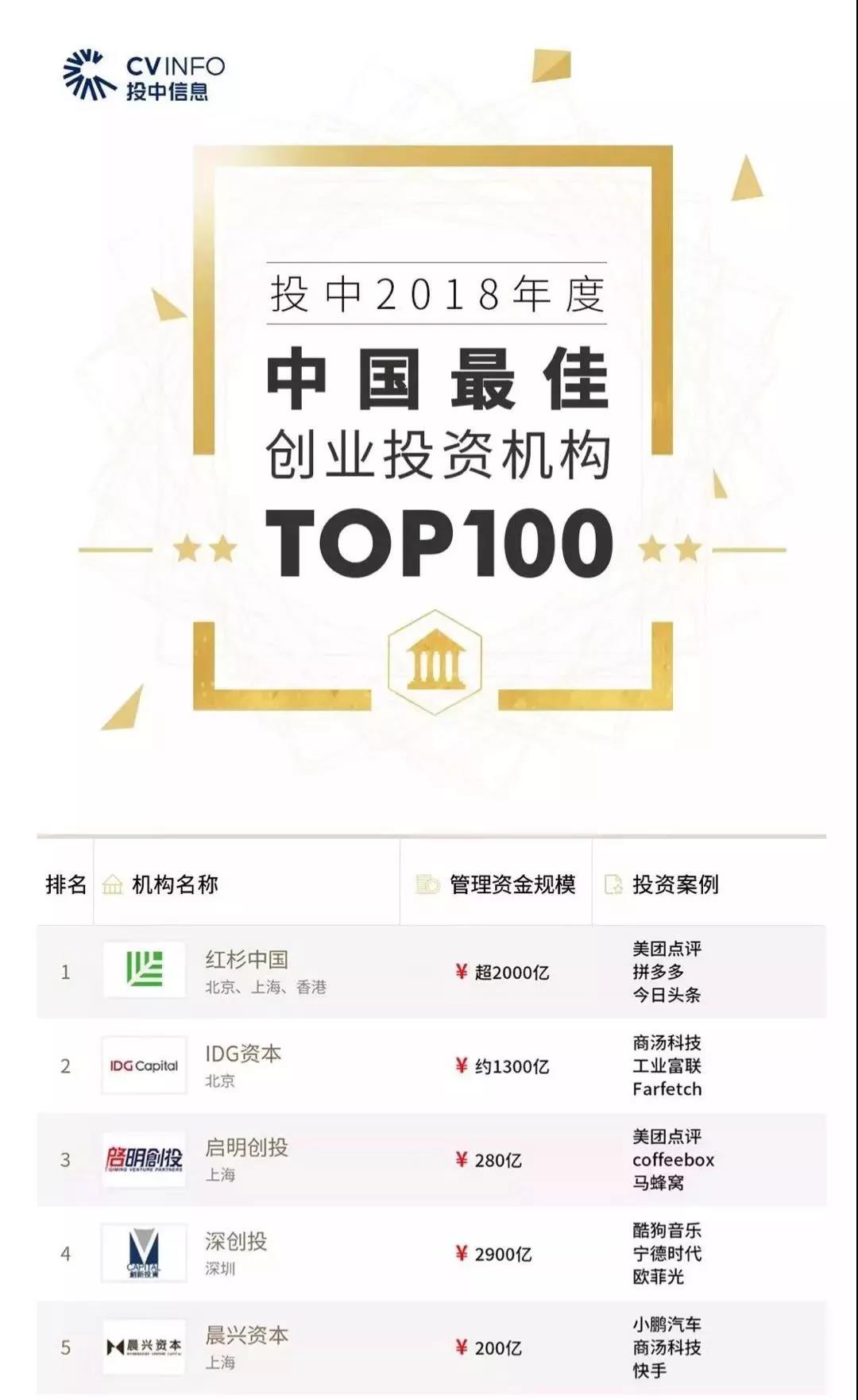 啟明創(chuàng)投同時獲評中國最佳外資創(chuàng)投機構第三名,中國最佳回報創(chuàng)業(yè)投資機構TOP10。