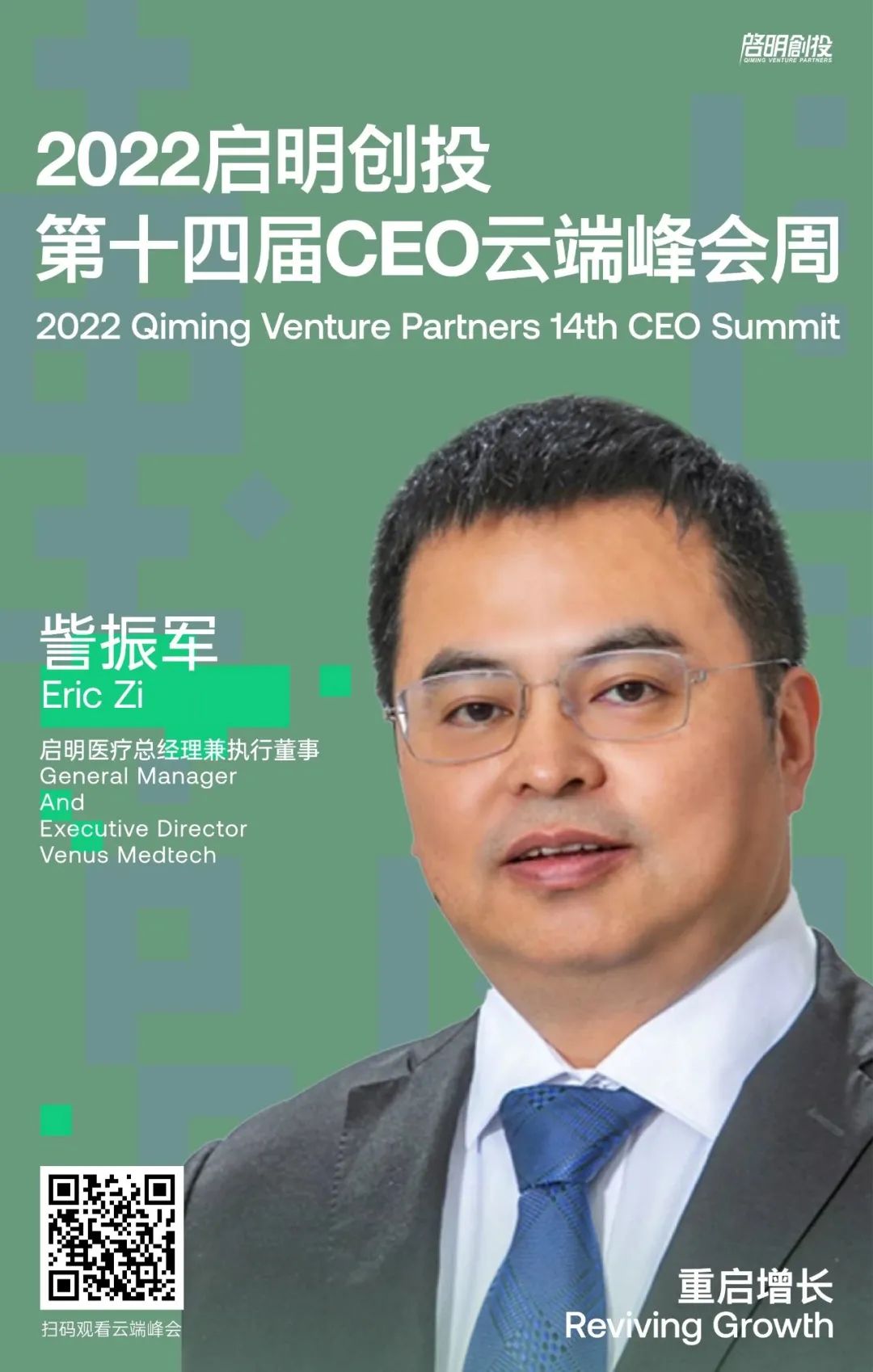 我們邀請了中國創(chuàng)新醫(yī)療器械領(lǐng)域非常優(yōu)秀的公司的代表,且在國際化方面做得非常好的開拓者啟明醫(yī)療的總經(jīng)理兼執(zhí)行董事訾振軍訾總來做分享。