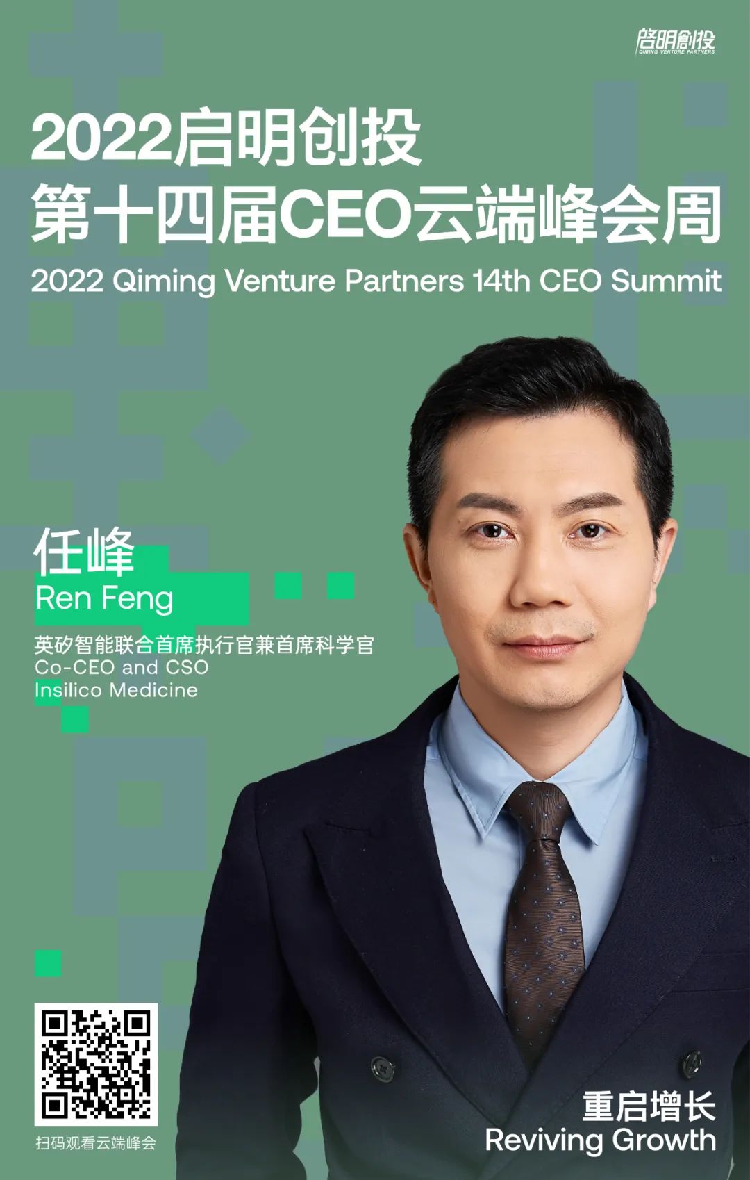 在2022啟明創(chuàng)投第十四屆CEO云端峰會(huì)周的對(duì)話CEO環(huán)節(jié),啟明創(chuàng)投合伙人陳侃與英矽智能聯(lián)合首席執(zhí)行官兼首席科學(xué)官任峰回顧了公司的前期積累和爆發(fā)的歷程。任峰表示,作為一家人工智能和藥物研發(fā)并重的公司,英矽智能正不斷迎來(lái)新的里程碑。