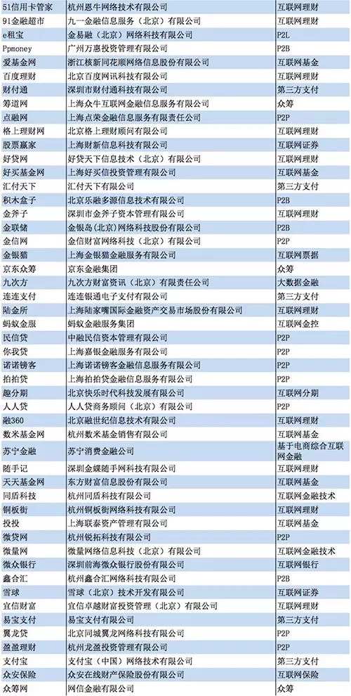 傳統(tǒng)金融領(lǐng)域的融合已經(jīng)跨越單純渠道合作階段,催生出各種各樣新的金融產(chǎn)品及業(yè)務(wù)形態(tài)。榜單中50家企業(yè)涉及中國互聯(lián)網(wǎng)銀行、互聯(lián)網(wǎng)保險、互聯(lián)網(wǎng)證券、互聯(lián)網(wǎng)理財、互聯(lián)網(wǎng)基金、互聯(lián)網(wǎng)分期、第三方支付、P2P、P2B、P2L、眾籌、大數(shù)據(jù)金融等16種互聯(lián)網(wǎng)金融企業(yè)。