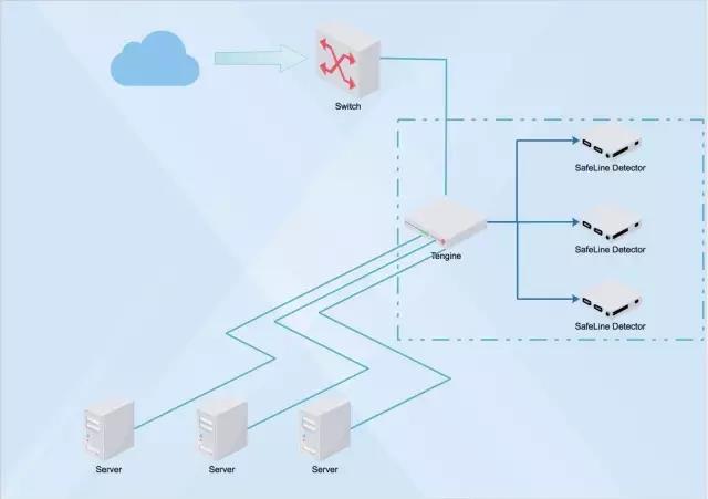 使用 Nginx 作為反向代理,雷池(SafeLine)提供 Nginx Module 插入原有Nginx,采用物理旁路、邏輯串聯(lián)的方式,接入網(wǎng)絡(luò)來(lái)實(shí)現(xiàn)在不改變?cè)芯W(wǎng)絡(luò)拓?fù)涞那闆r下完成流量檢測(cè)工作。此種模式擁有良好的水平擴(kuò)展方式,可方便增刪檢測(cè)節(jié)點(diǎn),理論上可支持無(wú)上限的并發(fā)處理量,并且完全不影響業(yè)務(wù)。