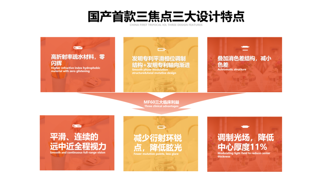 三大特點可以為患者提供平滑、連續(xù)的遠中近全程視力,減少傳統(tǒng)衍射環(huán)銳點,為患者減少眩光,并使人工晶狀體中心厚度降低11%,使人工晶狀體更易通過小切口。