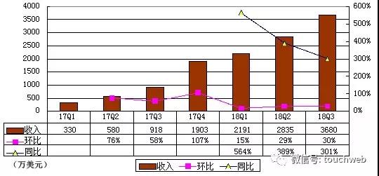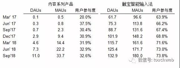 觸寶的內(nèi)容系列產(chǎn)品的平均MAU為3370萬(wàn),而2017年9月為230萬(wàn),同比增長(zhǎng)13.5倍。