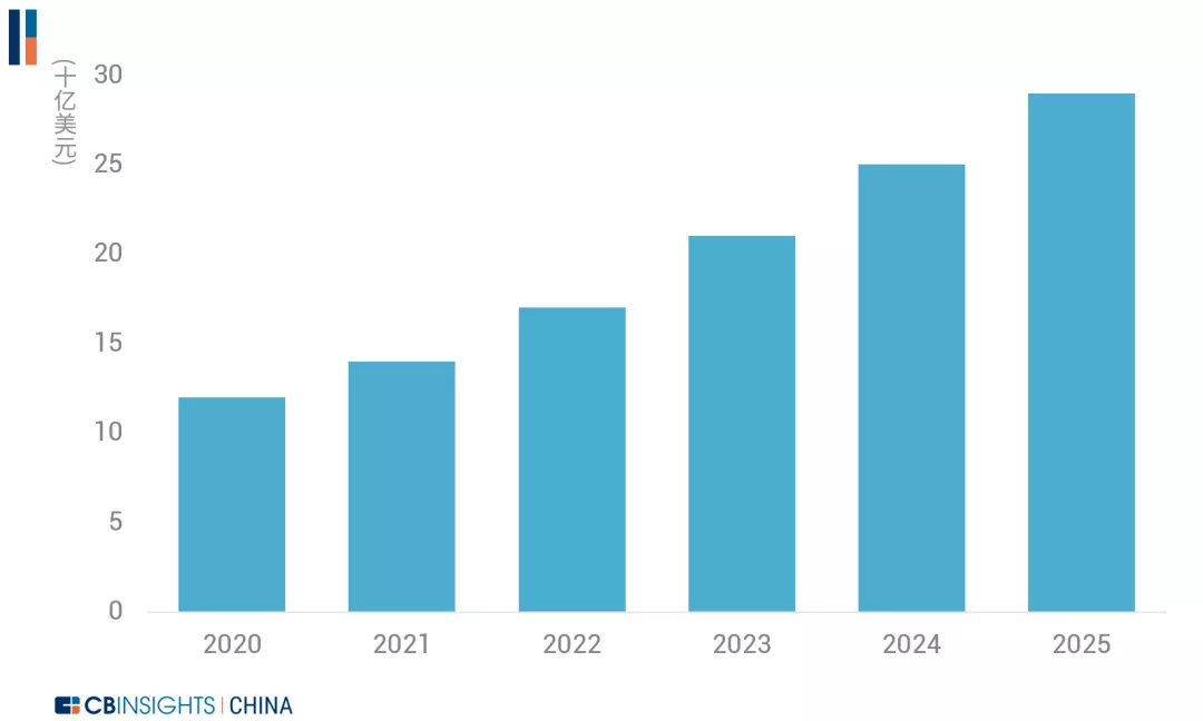全球細(xì)胞和基因療法市場(chǎng)規(guī)模增長(zhǎng)趨勢(shì)圖(來(lái)源 | CB Insights)