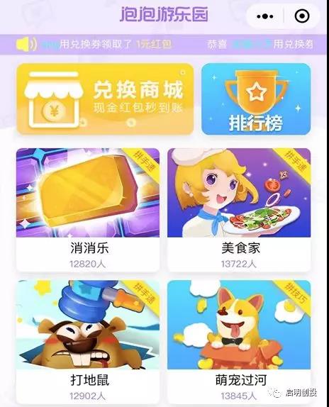 區(qū)別于快手電丸、同桌游戲等主打社交類的小游戲平臺,泡泡游戲強(qiáng)調(diào)的是“輕社交、重對戰(zhàn)”,以游戲本身的樂趣為導(dǎo)向,通過建立對戰(zhàn)游戲矩陣,培養(yǎng)用戶的對戰(zhàn)習(xí)慣。此外,消費者也可以通過拉新、獲勝等方式獲得一定量的虛擬貨幣(紅包),用以兌換虛擬或?qū)嶓w的獎品。