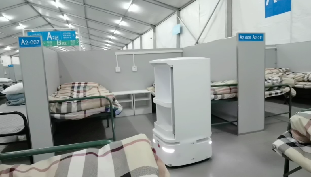 目前,云跡機器人已在方艙醫(yī)院內(nèi)投入使用,為方艙工作人員、醫(yī)護人員、病患提供送藥送餐、試劑回收、環(huán)境消殺等無間斷服務(wù)。