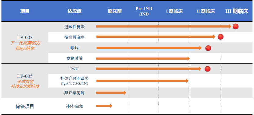 天辰生物以自身免疫疾病創(chuàng)新藥物的研發(fā)為核心,專注于過敏和補(bǔ)體兩個(gè)領(lǐng)域。在過敏領(lǐng)域,公司開發(fā)的下一代抗IgE抗體LP-003是目前全球進(jìn)度最快的同類藥物。在治療過敏性鼻炎的2期臨床試驗(yàn)中,LP-003展現(xiàn)出極佳的療效和安全性,顯示出成為同類最佳(best-in-class)藥物的潛力。LP-003的3期臨床正在積極推進(jìn),預(yù)計(jì)將于2025年下半年啟動(dòng)BLA,邁向上市。此外,LP-003在慢性蕁麻疹、哮喘等適應(yīng)癥的2期臨床試驗(yàn)也正在開展中。