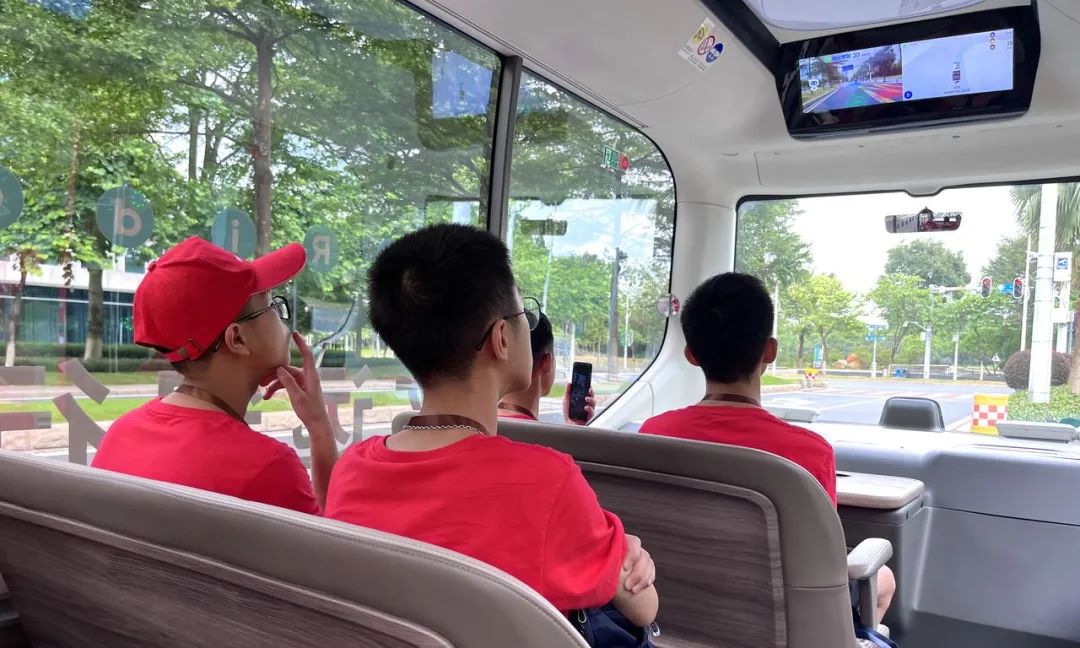 互動環(huán)節(jié)結束后,同學們迎來了文遠小巴體驗環(huán)節(jié)。孩子們被文遠小巴所吸引,并拍照分享。一位同學表示:“自動駕駛真的太神奇了,它會自己轉彎、剎車,簡直就像是科幻電影里的場景!”