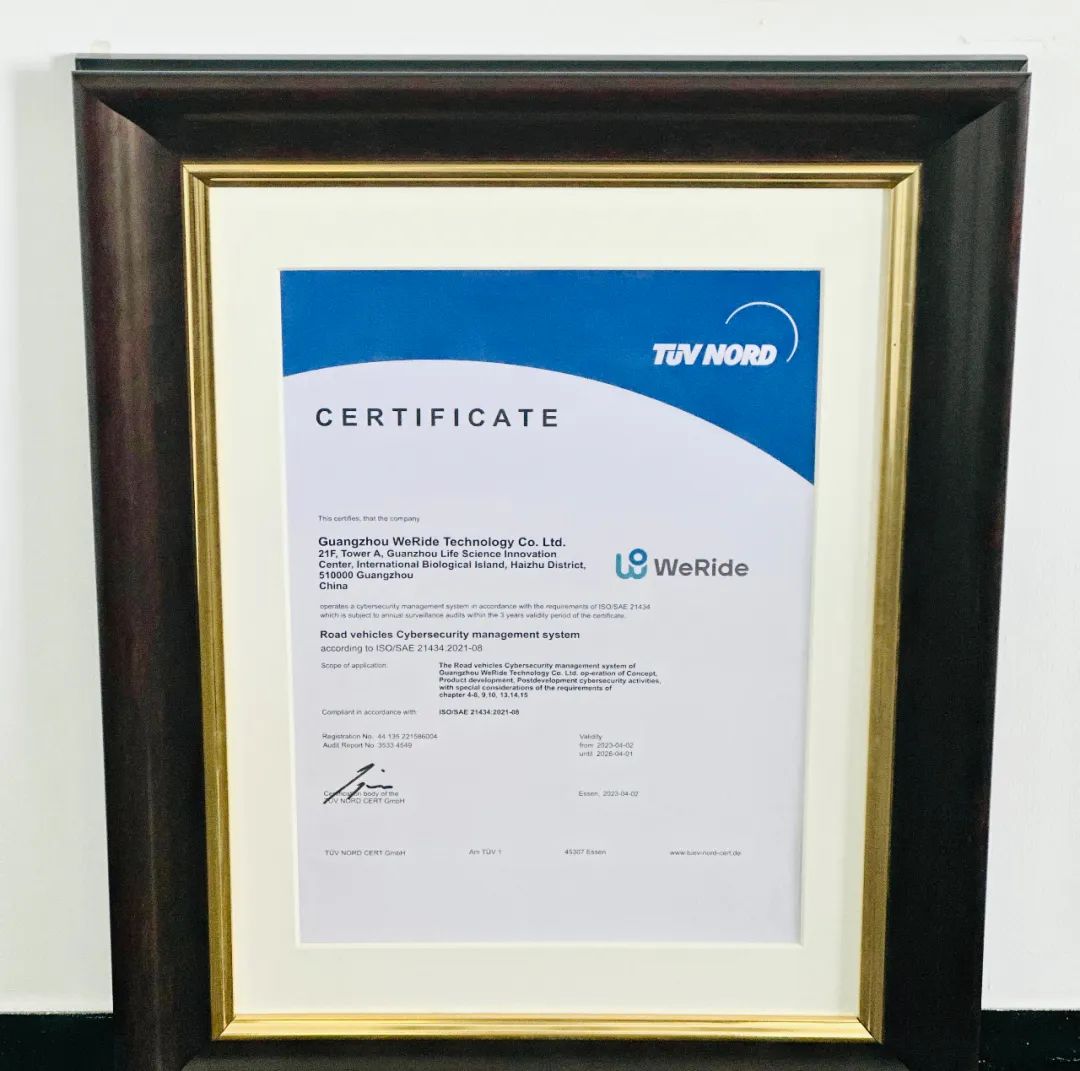 文遠(yuǎn)知行通過(guò)ISO/SAE 21434認(rèn)證