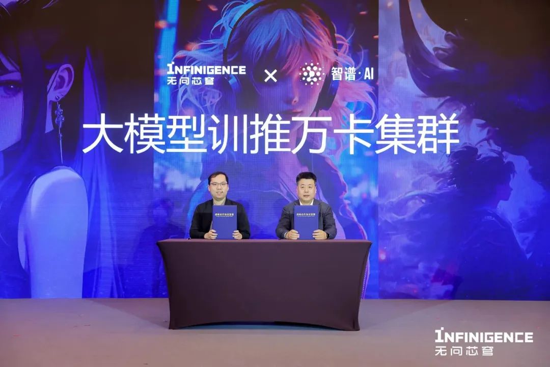 無(wú)問(wèn)芯穹聯(lián)合創(chuàng)始人兼首席執(zhí)行官夏立雪與智譜AI總裁王紹蘭現(xiàn)場(chǎng)簽約