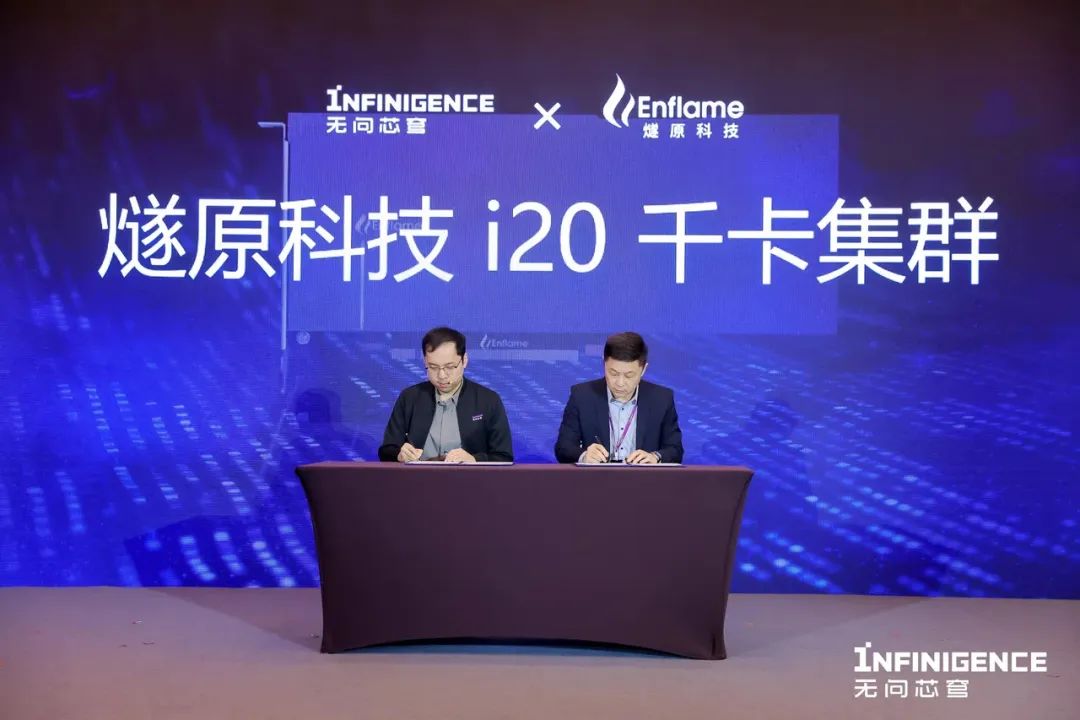 無(wú)問(wèn)芯穹聯(lián)合創(chuàng)始人兼首席執(zhí)行官夏立雪與燧原科技創(chuàng)始人、董事長(zhǎng)、首席執(zhí)行官趙立東現(xiàn)場(chǎng)簽約