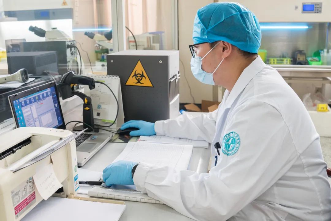 紹興中心醫(yī)院的醫(yī)生正在使用分子診斷儀進行檢測