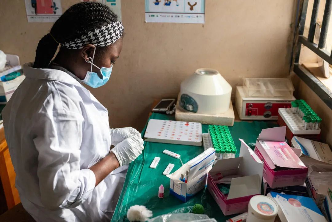 尼日利亞阿布賈Durumi初級衛(wèi)生中心的一名技術人員正在進行瘧疾測試