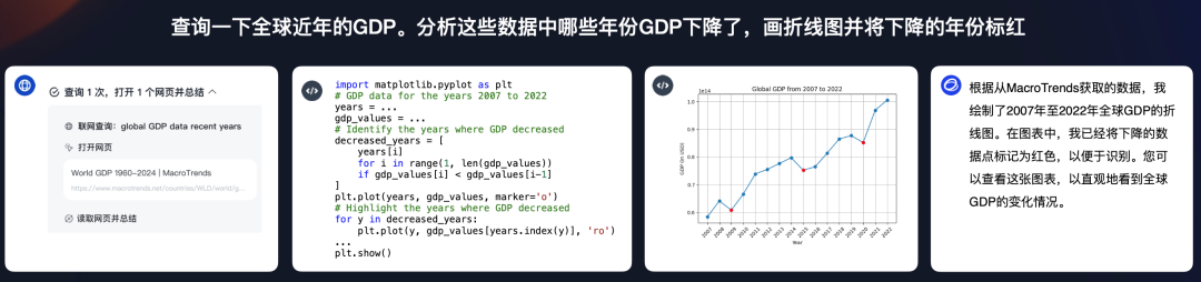 同樣GLM-4也可以完成文件處理、數(shù)據(jù)分析、圖表繪制等復(fù)雜任務(wù),支持處理Excel、PDF、PPT等格式文件。